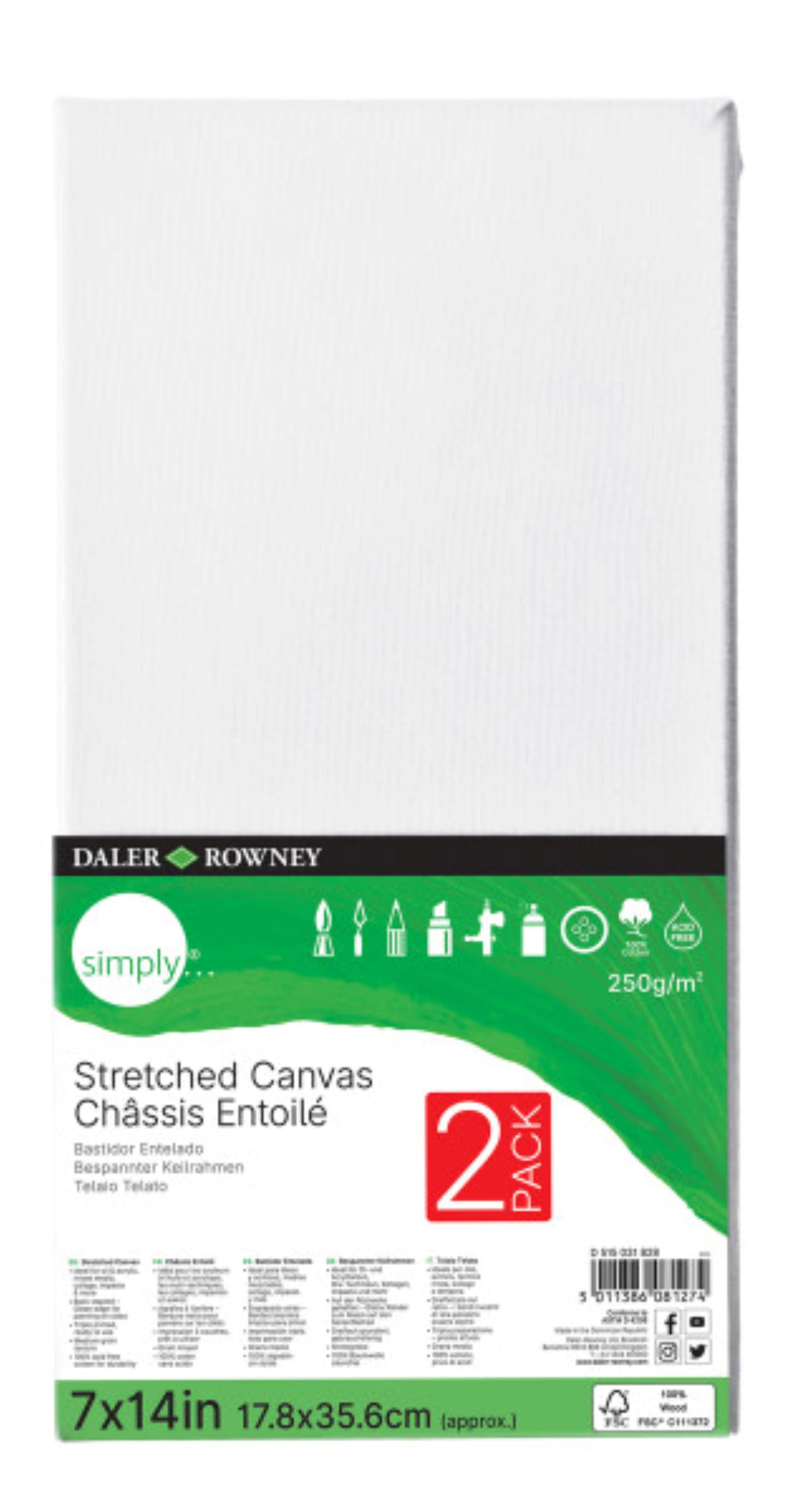 Daler Rowney Simply Stretched Canvas 7 X 14 2 Piece Walmart Com